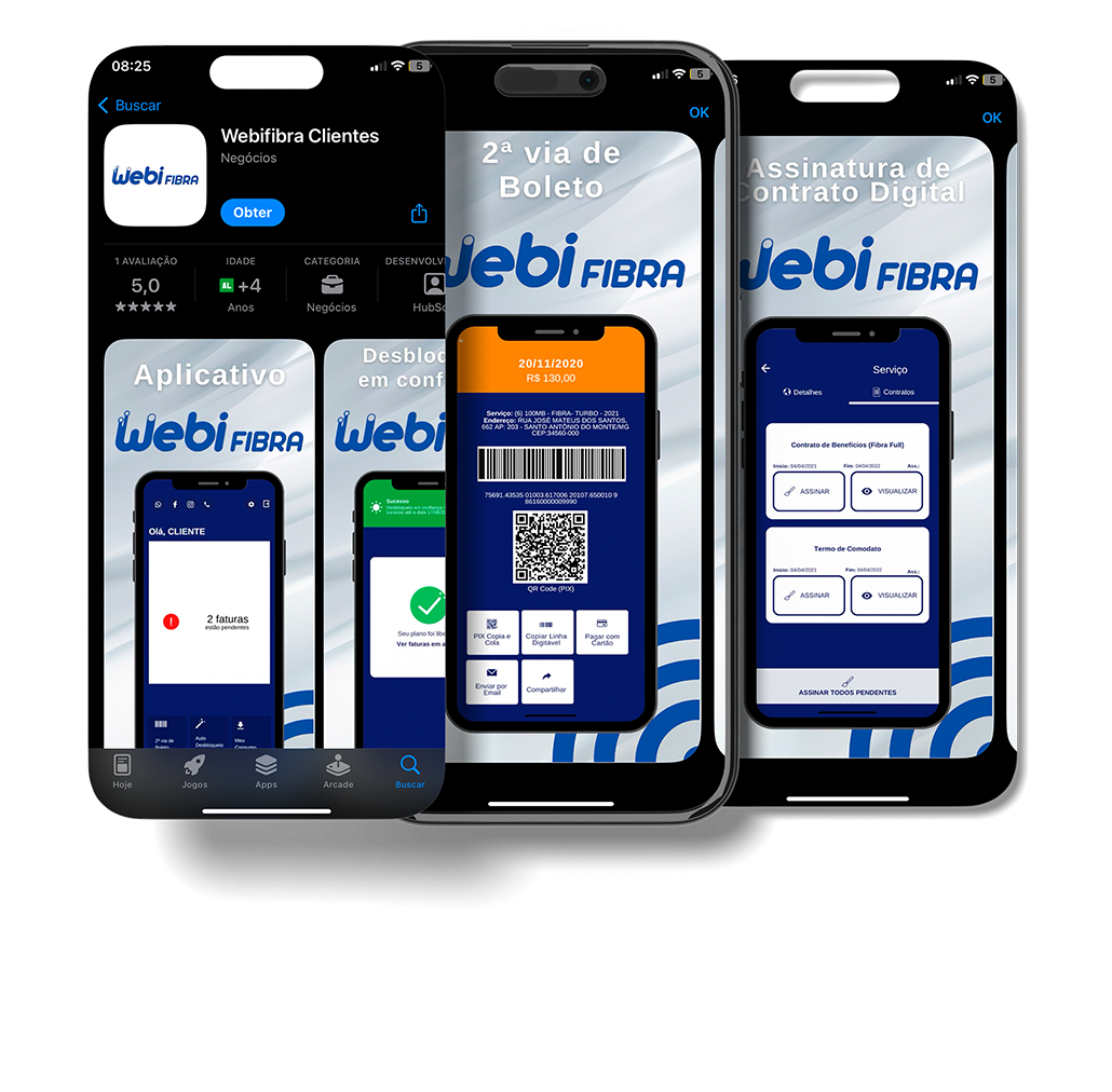 Tenha o controle total da sua internet com o App Webifibra Clientes. Consulte boletos, teste de velocidade, suporte técnico e muito mais.